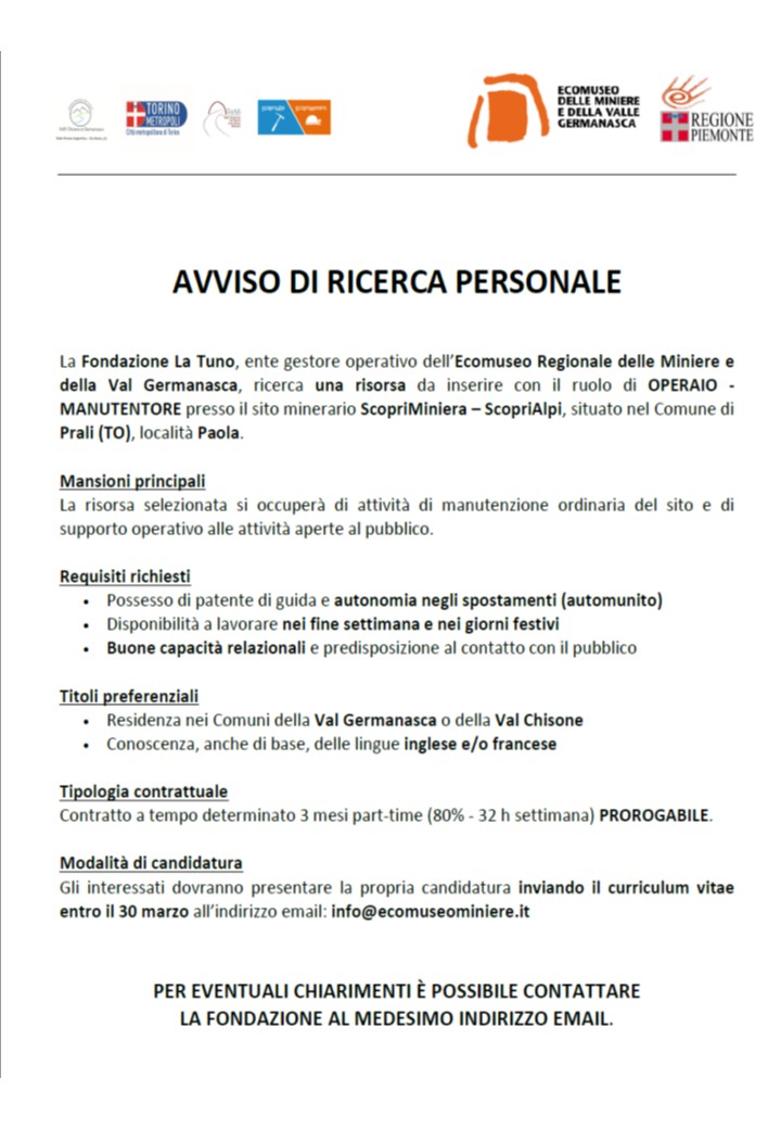 L’Ecomuseo delle Miniere della Val Germanasca vi invita a vivere un’esperienza unica anche durante le festività pasquali. Dal 2 al 6 aprile, inclusi P...