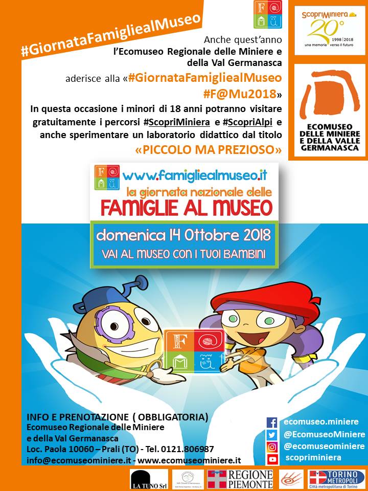 Giornata delle Famiglie al Museo F@MU 2018 Domenica 14 ottobre 2018 all'Ecomuseo delle Miniere e della Val Germanasca