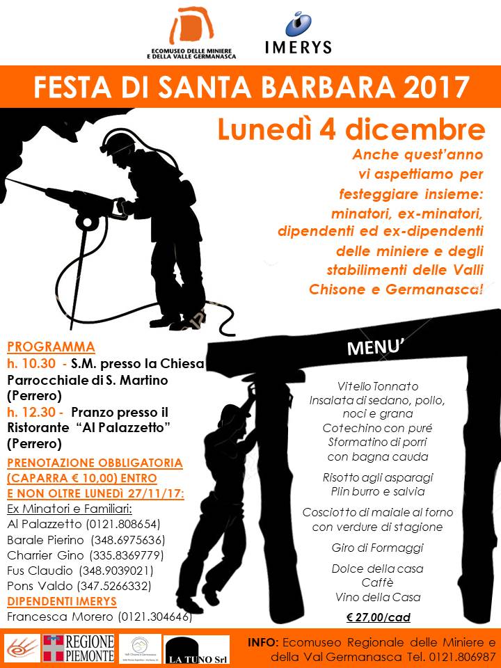 FESTA DI SANTA BARBARA Lunedì 4 dicembre 2017 minatori ed ex-minatori insieme per la storica ricorrenza