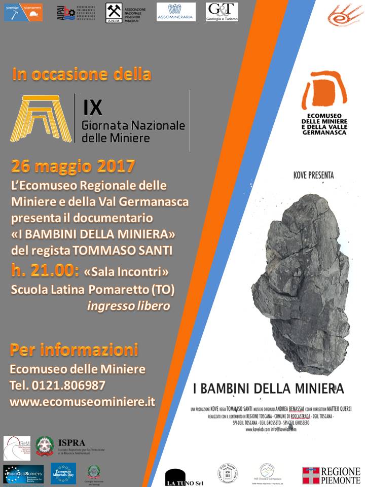 Giornata Nazionale delle Miniere 2017 Venerdì 26 maggio presentazione del Film "I Bambini della Miniera"
