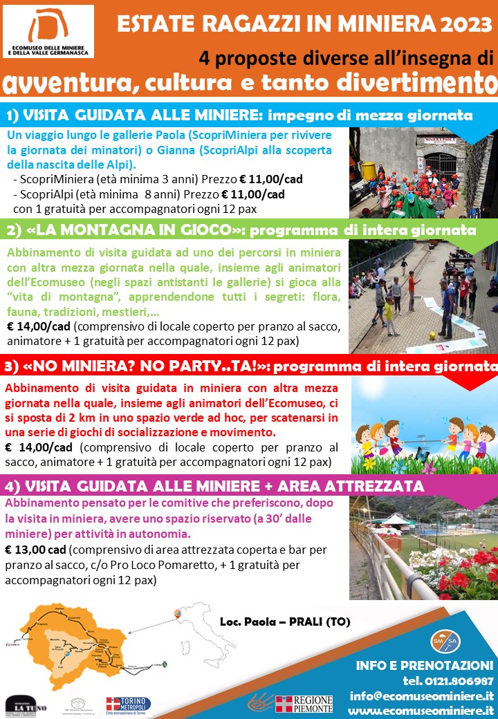 Tanti buoni motivi per scegliere un’ “Estate in Miniera”. L’ Ecomuseo Regionale delle Miniere e della Val Germanasca guarda già alla stagione estiva c...