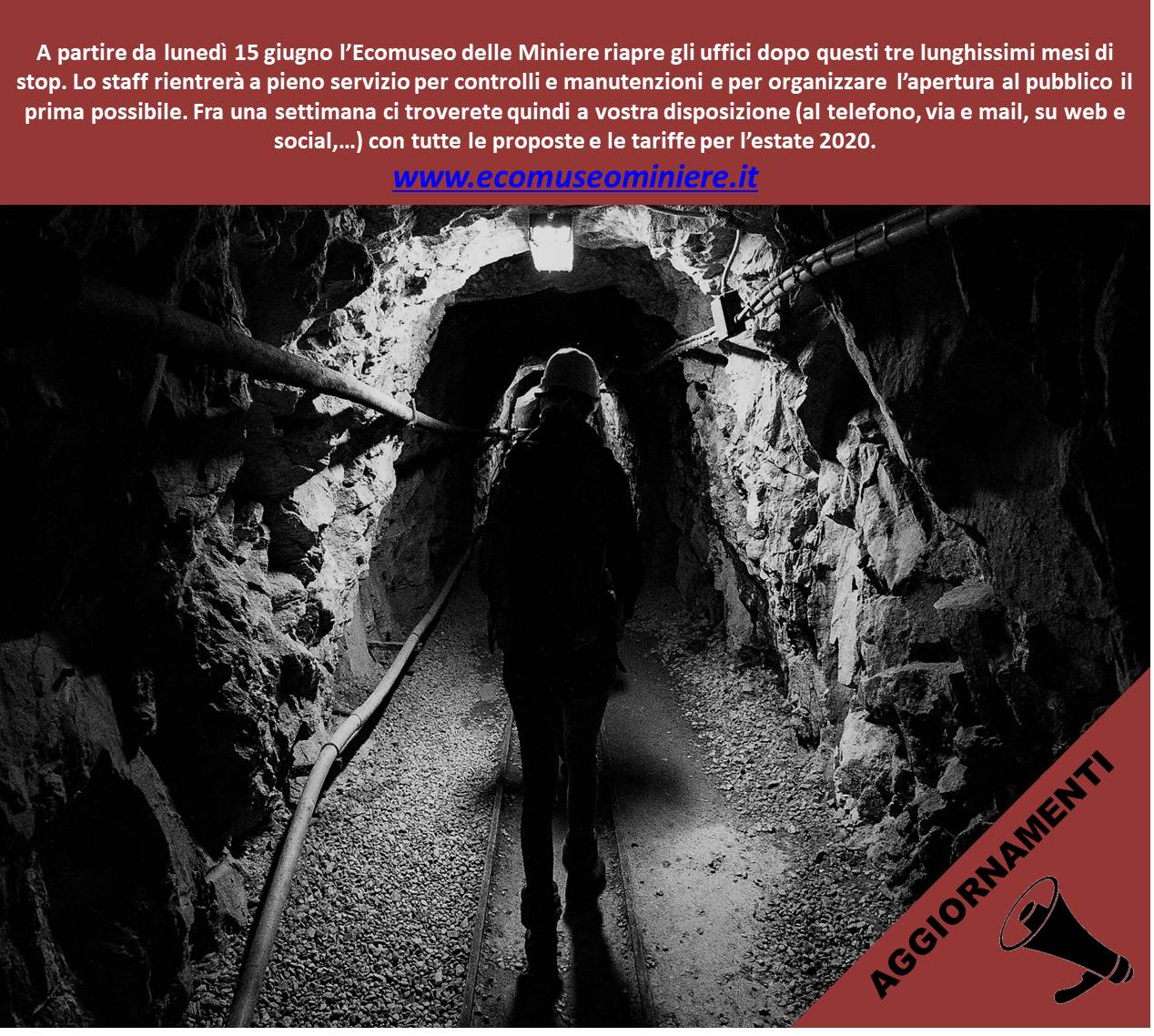 A partire da lunedì 15 giugno l’Ecomuseo delle Miniere riapre gli uffici dopo questi tre lunghissimi mesi di stop. Lo staff rientrerà a pieno servizio...