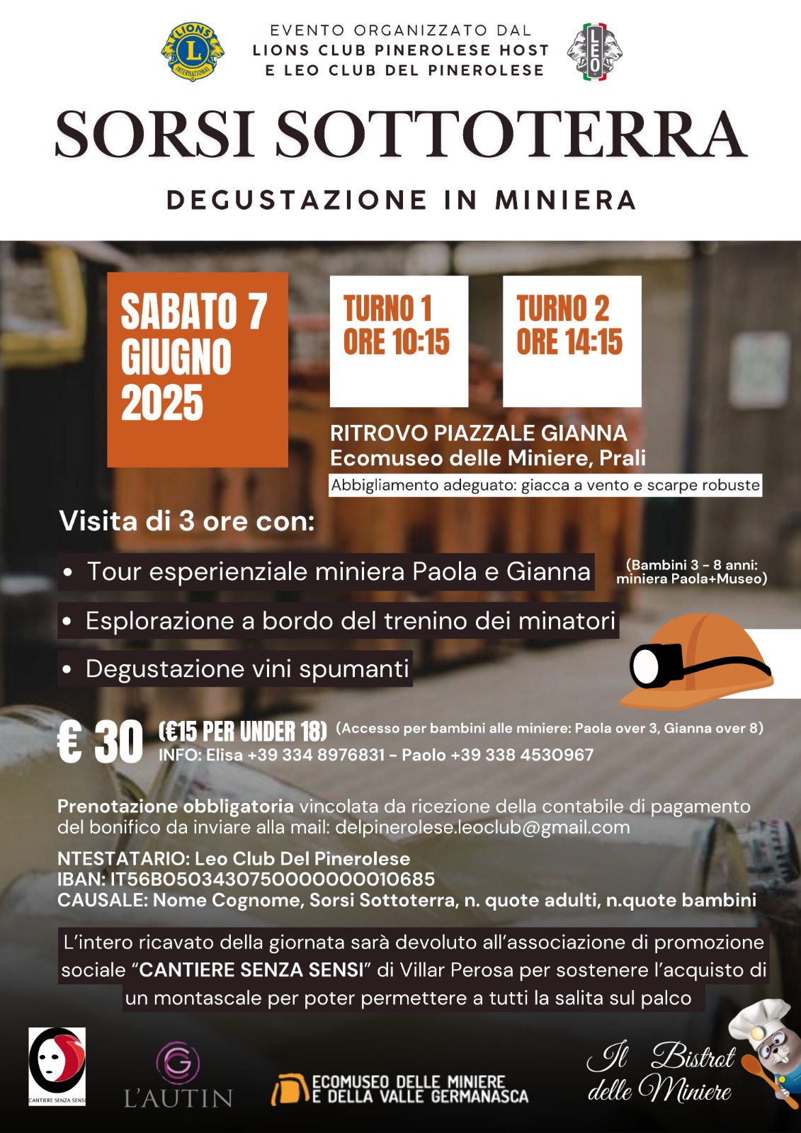Sabato 7 giugno 2025, l’Ecomuseo Regionale delle Miniere e della Val Germanasca, in collaborazione con il Leo Club Pinerolo, ospiterà una speciale giornata all’insegna dell’esperienza, del gusto e della solidarietà: SORSI SOTTO TERRA.