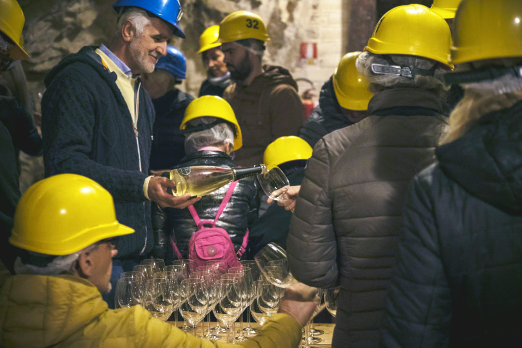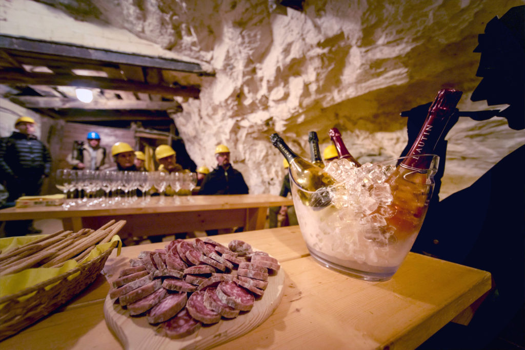 Ora, ad oltre 8 anni di distanza, il progetto è oramai consolidato: sono state ricavate due cantine sotterranee lungo le miniere Paola e Gianna, che ospitano ogni anno – a riposare per 36 mesi per la fase cosiddetta di “presa di spuma” – oltre 12 mila pregiate bottiglie. Alla fine di un lungo processo di lavorazione, queste bottiglie saranno finalmente Eli Brut ed Eli Rosé, “I vini che nascono dalla pietra e riposano nel talco”, secondo l’azzeccato claim de L’Autin.