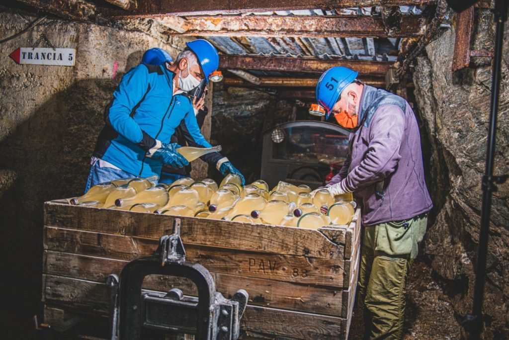 Nel 2015 lo staff dell’Ecomuseo venne contattato da Mauro Camusso, titolare dell’azienda vitivinicola “L’Autin” (di Barge, ai piedi del Monviso). Mauro, dopo aver partecipato qualche anno prima ad una visita a ScopriMiniera, aveva ora una proposta da fare: sperimentare l’affinamento di vini spumanti nelle miniere di talco della Val Germanasca, un ambiente molto particolare e con condizioni differenti rispetto a quelle che si possono verificare in cantina.